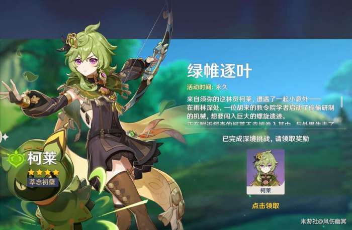 【柯莱】满星通关「深境螺旋」3-3后,继续通关4-3可领取;