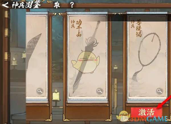 答:在听竹书轩内找到神兵图鉴,点击激活按钮就可以将神兵激活了。