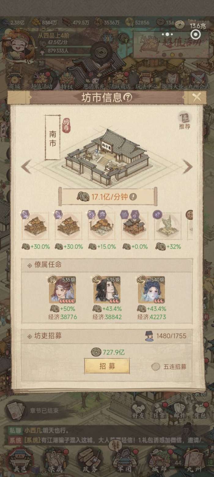 西市的“坊吏”职位应尽可能招满,每个坊吏都能直接提升对应建筑的税收收入。