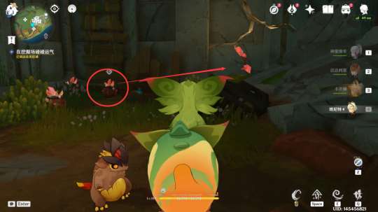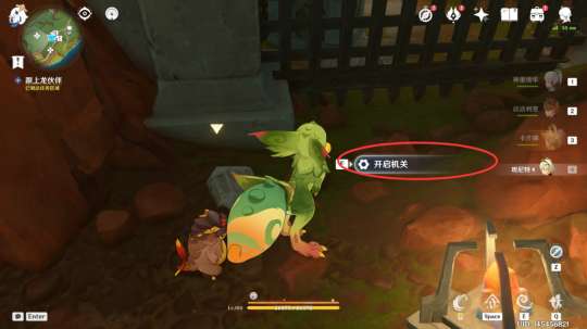 跟随任务指引前往下方挖掘场地,到达目的地之后小峭锋龙会指引我们进行对应解谜点解谜(它还会提示我们宝箱等)。