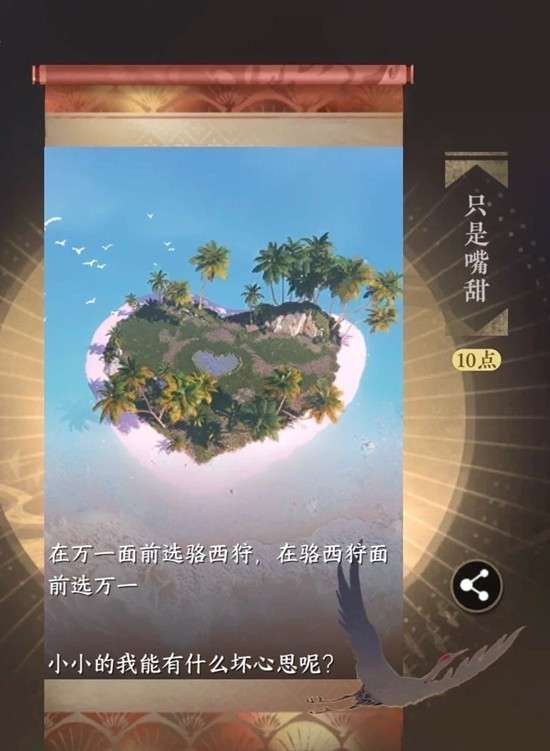 【只是嘴甜】是逆水寒沧澜剧情隐藏成就,需在万象剧情对话中完成趣味选择:在万一面前选骆西狩,在骆西狩面前选万一,故意 “两边夸” 即可解锁。
