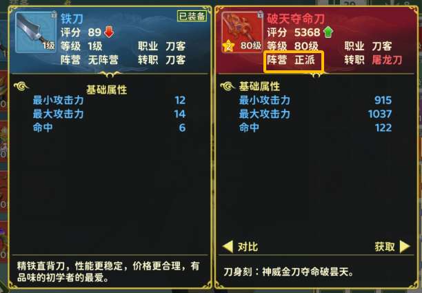 选择正派的少侠只能装备正派武器,选择邪派的少侠只能装备邪派武器。