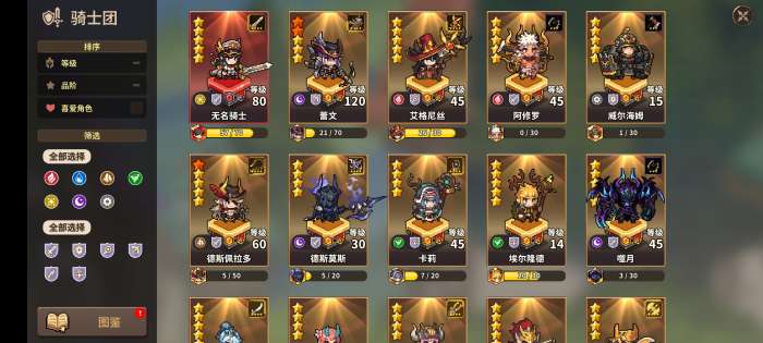 无名骑士团怎么玩,所有的角色最高星级是10星,角色可以通过碎片升星,也可以通过碎片合成,升星的话会提高20的等级上限,目前最高10星是200级,除了新出的up角色,其他角色都可以在主线扫荡碎片出来(无名骑士3星和5星细节)