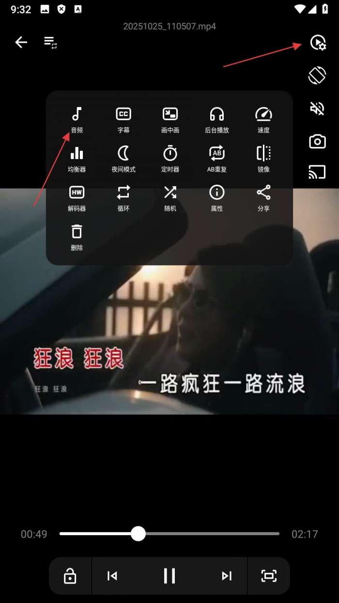 3、在视频播放界面点击【设置图标】,接着选择【音频】选项,即可进入音频设置页面。