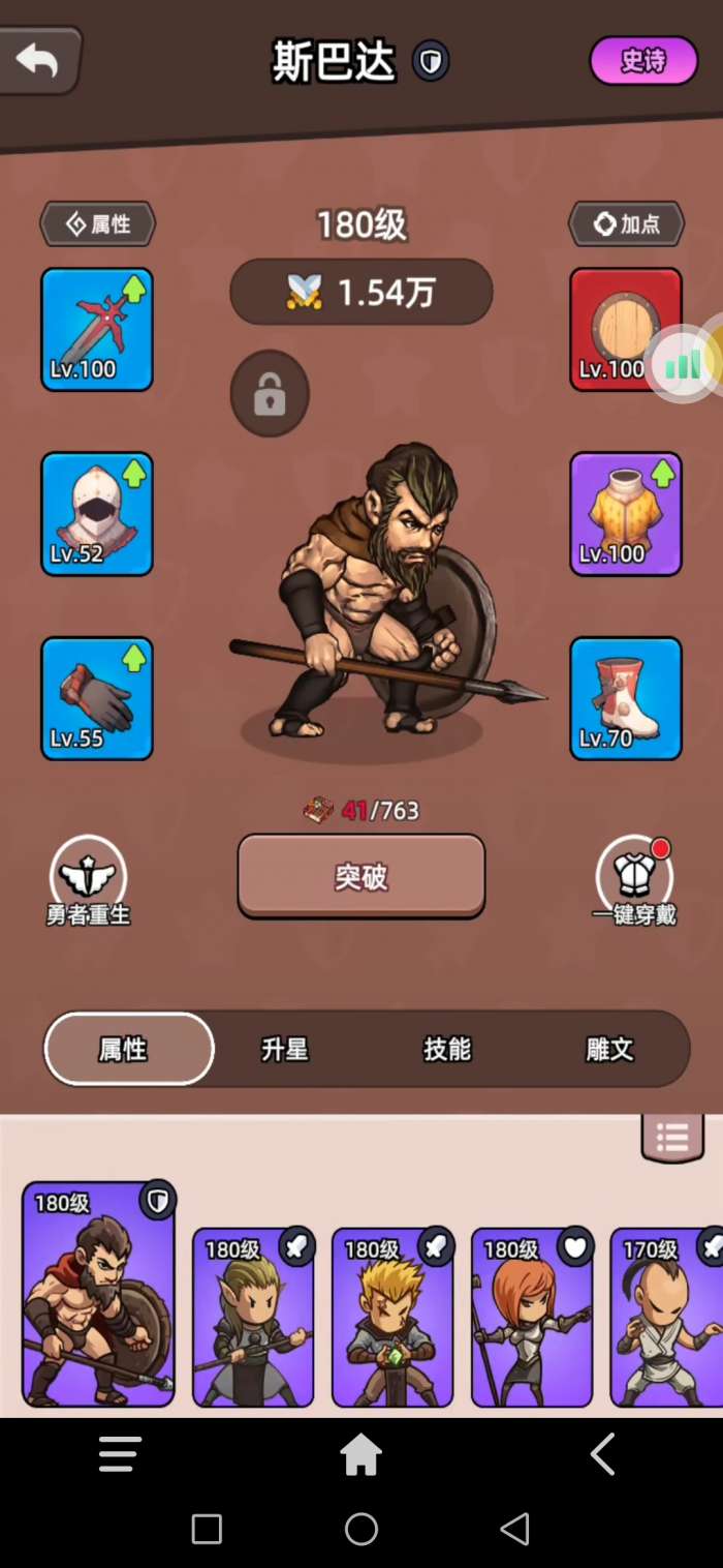 勇者培养:所有勇者平均培养就可以,属性点全加血,就完事了,无脑推关,后面需要改属性点的时候,你也差不多会玩了,装备强化平均升就好,不需要的时候,分解装备资源会返回,不用担心。