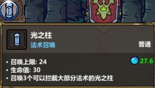 而光之柱则是我们最重要的防御法术了,我们玩的并不是献祭流,加上寄生虫也只让光之柱可以物尽其用而已。
