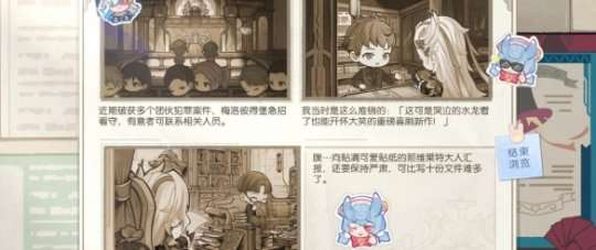 完成希格雯的贴纸绘制任务并将其送给那维莱特,同时阅读公告板上的报道,即可获得原石、角色突破材料等游戏奖励。