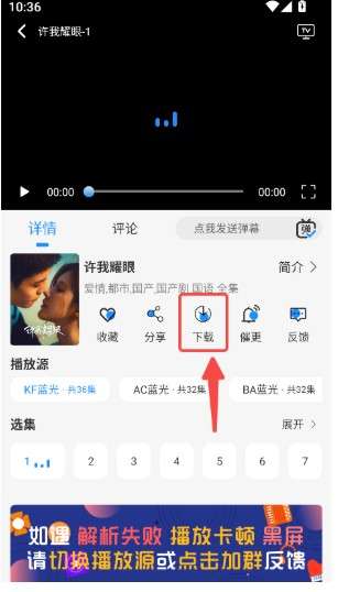 2、进入播放页面后,点击下载。