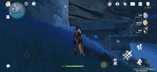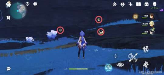 我们从山坡上的[渊下宫]传送点出发,向右上方走,就能发现一个平台,平台中央有三个木箱子。打破这些木箱子可以露出一个洞口,跳入其中可以找到三个水元素方块。使用水系法术攻击可激活这些方块,从而得到一个普通的宝箱。