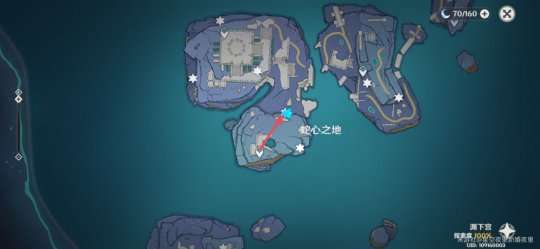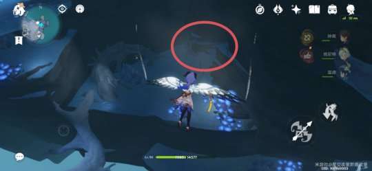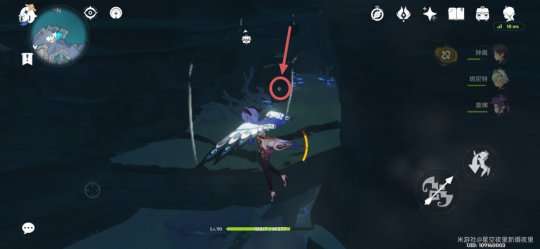 我们从[渊下宫]传送点出发,向右上方飞行,在悬崖下方的洞穴中有2个键纹封锁点。需要在白天才能解锁这些封锁点,解开后可以得到一个宝箱。