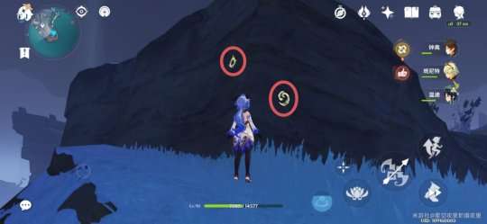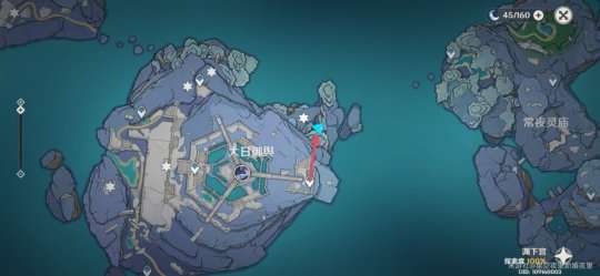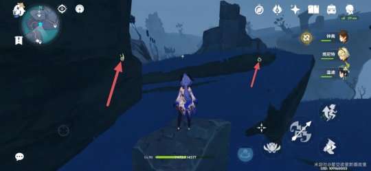 我们从渊下宫的传送点出来后,向下方飞行,在道路拐角处会看到2个键纹封锁点。这些点只有在白天状况下才能被解锁,一旦解锁成功,你会得到一个宝箱作为奖励。