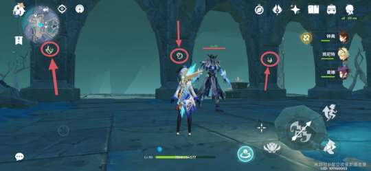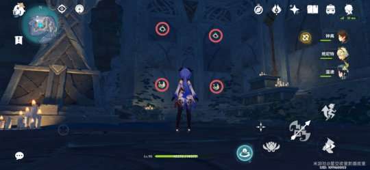 我们从渊下宫的入口传送点出来后,需要向左上角走,到达一个上方平台,平台上有4个雷元素方碑。如果将这4个雷元素方碑全部激活,就可以获得一个普通宝箱。