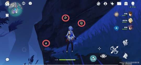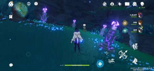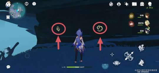 我们继续向右上角前进,到达悬崖边,跳下悬崖后可以发现一个洞口。在洞内有两个键纹封锁点,只有在白天才能解锁。解锁后可以获得一个宝箱。