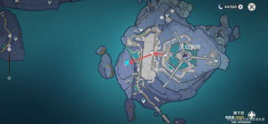 我们通过从[渊下宫]传送点出来,在传送点下方的墙壁上发现了3个锁着的键纹封锁点。只有在常夜与白昼相互切换的情况下才能解锁这些点,并且成功解锁后我们将获得一个宝箱。