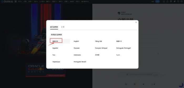 在Gate交易所(也称芝麻开门)切换中文界面非常简单,网页版和手机App的操作路径略有不同。网页端登录Gate.io官网后,在页面右上角找到地球仪图标或标有“Language”的按钮,点击后在弹出的语言列表中直接选择“简体中文”即可,系统会自动刷新界面。