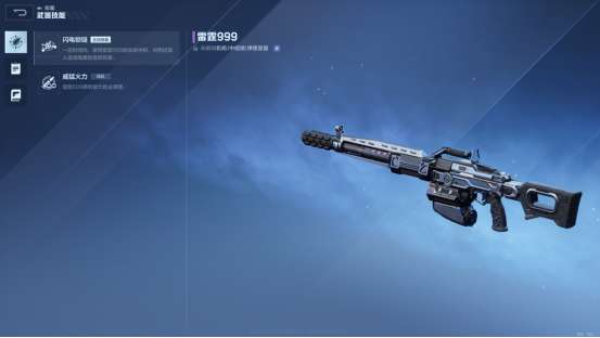 效果:在一定时间内,使用雷霆999射击命中时,对附近敌人造成电属性连锁伤害。