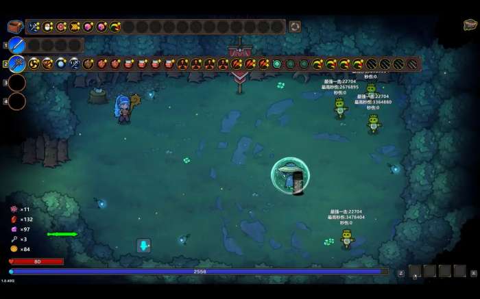 最后分享几张实战的图,玩的有点糙,为了搞诅咒成就拿了一堆诅咒,最后15个诅咒拿到了,还移除了好几个,后面来诅咒遗物了就没移后面的,玩的有点难受,法杖后面也忘换了,导致最后差一点打过熊猫人。