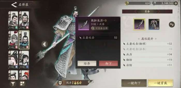 这里推图时大家要注意自己手中可用武将有哪些,首先说说游戏初始赠送的几名角色,曹操基本是必练的角色,他在各个方面都很优秀,攻击距离适中,拥有范围攻击和群体增益,机动性也很强,基本上没有短板,最关键的是他是目前游戏中为数不多的阵眼主将,开局即可为团队提供高额属性增益,且随着主线推进可以持续获得曹操的角色碎片,升至满星基本没有压力,然后夏侯兄弟虽然是免费赠送的武将,但随着主线推进,也能够将他们升至超品质,也就是从橙将升为红将。