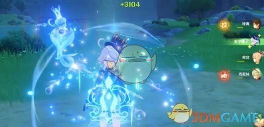 1、特效展示:在角色身前生成一个蓝色具有枫丹风格的王冠,特效持续时间相对较长。