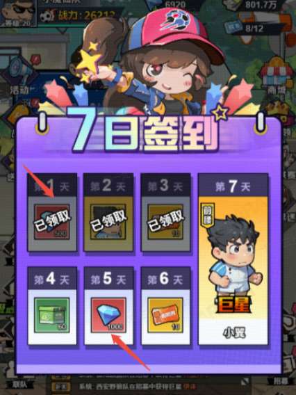 a. 7日签到:连续7日签到,可累计获得1500钻石。(等于十张招募券,必做)