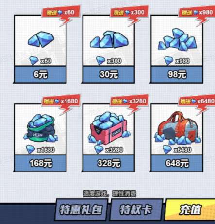 e. 充值:购买月卡、季卡,或者直接充值钻石。解锁vip特权。(可立即获得大量钻石)