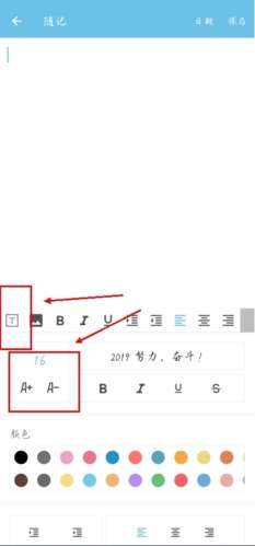 2、可以看到左下方有个【T】字体编辑的选项,选中它之后会弹出许多的功能,我们只需选择A+或者A-就可以调节字体大小了。