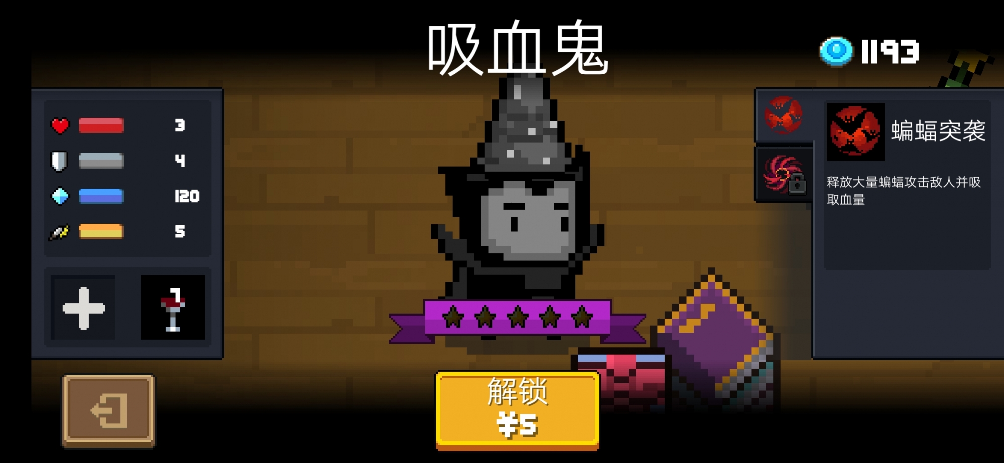 蝙蝠突袭:释放大量蝙蝠攻击敌人并吸取血量