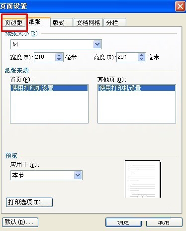 点击页边距选项卡。