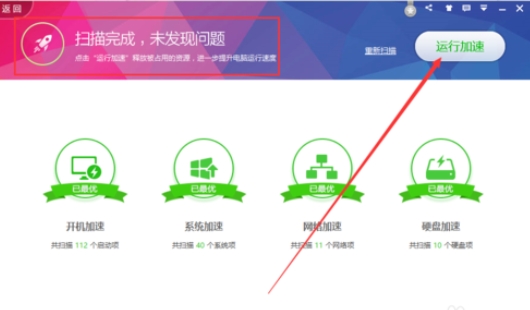 4、扫描完成后,点击“运行加速”;