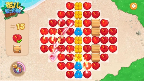详解消除道具之前,先简单简绍一下《花儿爱消除》的基本玩法。这款游戏与常规的三消游戏不同,不需要滑动相邻的色块,也不需要费力寻找能达成多消的元素。《花儿爱消除》中,只需要有2个相邻的元素相同,就能直接点击消除,完全不需要眯着眼睛挨个儿找元素,各种颜色分明的花朵元素一眼就能看尽,重要的是如何用更少的步数达成通关目标!