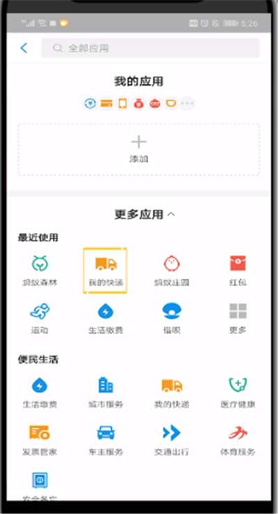 3、在便民生活中找到我的快递,点击进入,在这里可以查看自己的快递信息。