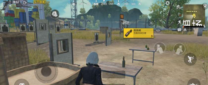 我们打开地图,跑到带有两个字靶场这里,靶场中间的小桌子上就有我们的燃烧瓶了。