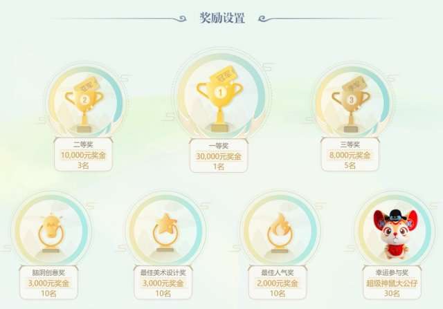 获奖玩家将根据奖项,对应获得超级神鼠大公仔、2000~30000人民币现金等丰厚大奖,让好创意熠熠发光!