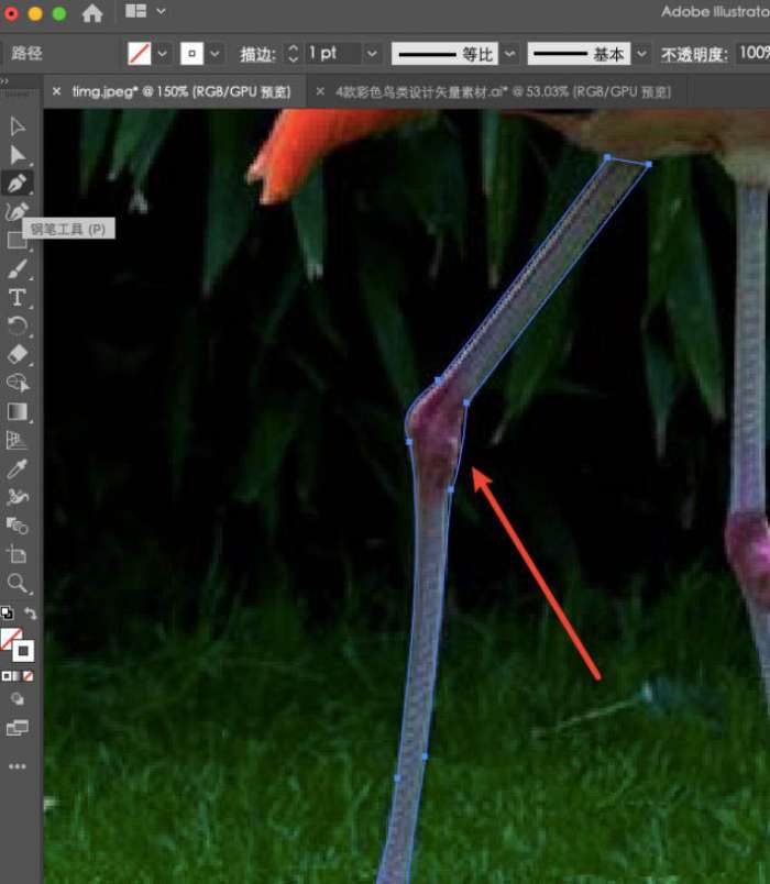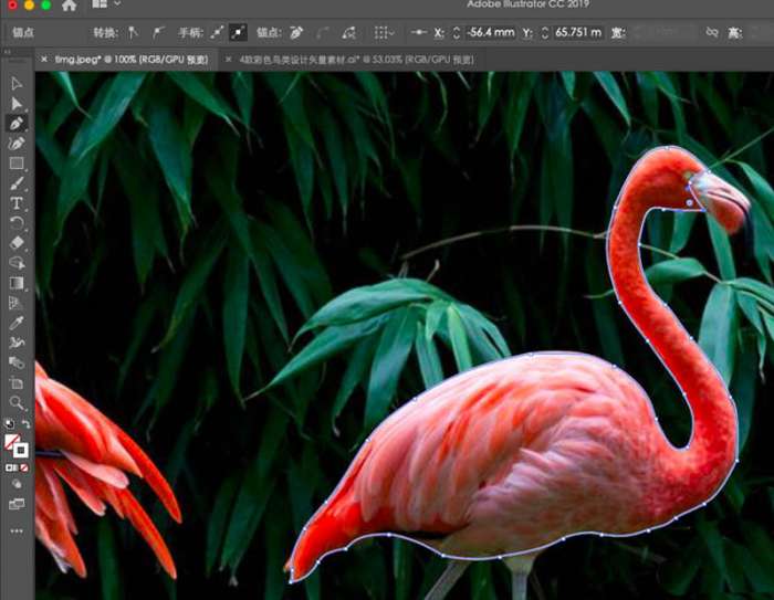 自己找一张火烈鸟的相片,用ai打开,以便做绘图参考。