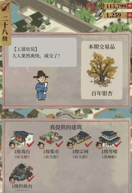 百年银杏的兑换,不一定非要100%是这五种建筑,大家可以自己选择,多试试。
