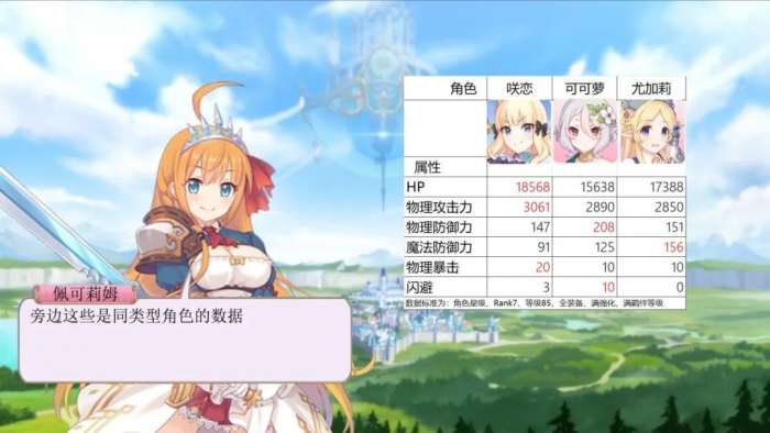 从表格中我们可以看出,咲恋的血量和攻击力高于其他两位同类型的角色,在辅助队伍的同时,往往咲恋能打出更加可观的伤害。但由于咲恋自身的物防和魔防较低,往往会承受不住伤害,导致减员。这也是咲恋活跃于竞技场而不是推图的原因。