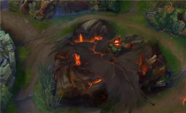 炼狱峡谷:炼狱亚龙割裂峡谷,在buff野怪营地处开辟新的道路并烧毁周围的草丛。此外,龙坑本身变为炼狱亚龙的熔岩领地,龙坑口的墙壁会坍塌。新的道路为玩家提供了让敌方措手不及的快速包抄或撤退机会。