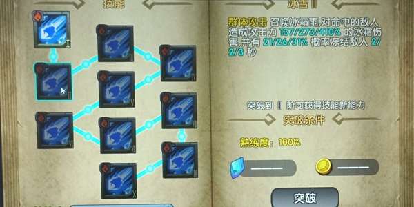 到了后面解锁这个技能可以练这个技能,把它升级,因为升级后有概率冰冻,控制还是挺不错的