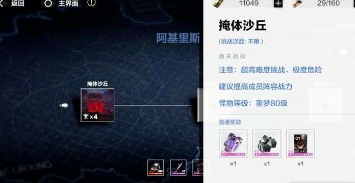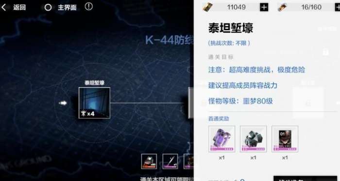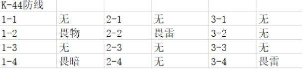 第一小节:禁卫x1 构造体x2 力士陆型x1第二小节:第一波次 舞轮肆型x3(一只有黑洞3) 第二波次 武藏玖型x1 舞轮肆型x2(一只有黑洞3)第三小节:第一波次 武藏陆型x1 信使x2 第二波次 遗迹勘探者x1 浪人肆型x2第四小节:第一波次 异合勘探单元x1 异合分解单元x2 第二波次 异合勘探单元x1 异合火力单元x2(一只有电盾)