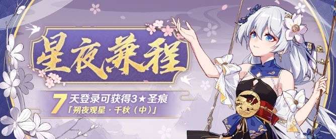 活动期间,累计登录可领取水晶*120、3★圣痕「朔夜观星·千秋(中)」等奖励!