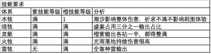 首先技能方面,肯定是老水牧投入最少,不需要把橙技能升满。