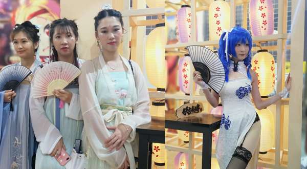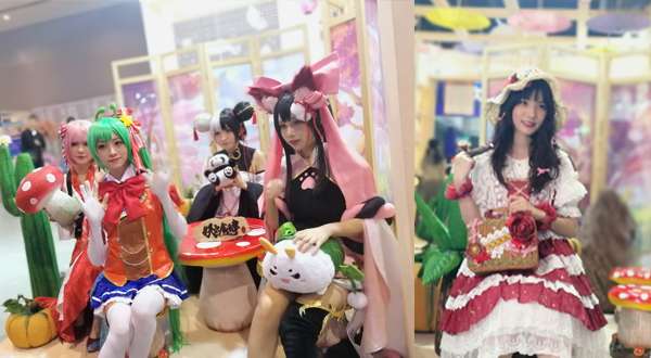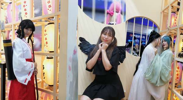 在此次飞行餐厅的展台设计上,我们为观众设计了多个拍照打卡地点,场景活泼的海报墙、不用补光灯的灯笼墙、蘑菇造型的餐桌,成了众人的首选。游戏内的猫妖、狐狸、熊猫娘也成为大家争相合影的对象。