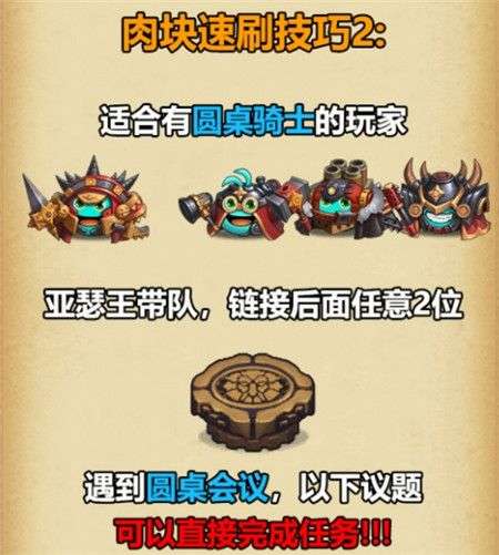 适合有圆桌骑士的玩家。亚瑟王带队,链接任意2为,遇到圆桌会议,以下议题可以直接完成任务。