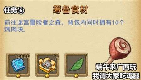 前往迷宫冒险者之森,背包内同时拥有10个烤肉块