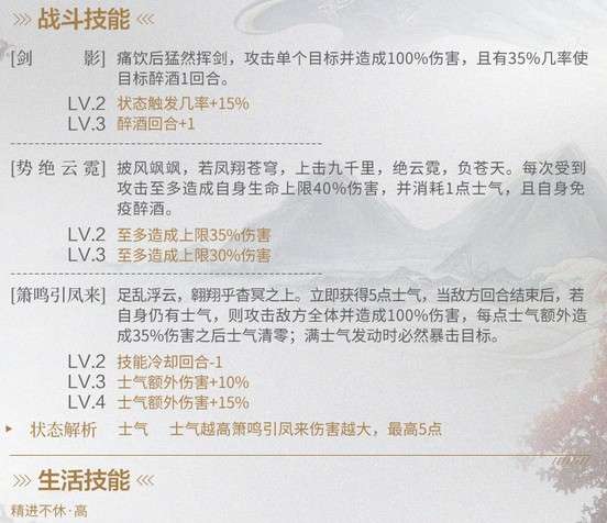 技能描述有点云里雾里,看怎么理解了,如果理解的是触发上限伤害和扣士气是因果关系,因为酒哥士气只在大招那一回合存在,所以代表被动只在这一回合有效,如果按照触发和扣士气是并列关系来看,那么上限伤害的被动就一直可以生效了……这个二技能还是要等实测吧