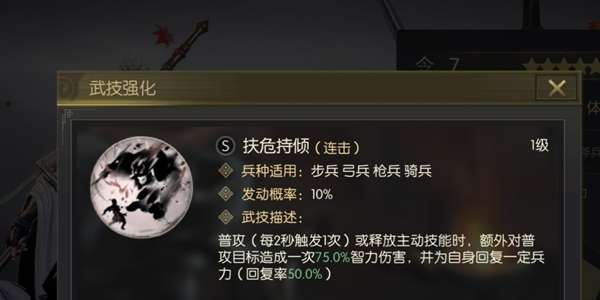一句话简评:智勇双全类连击将,优点就是泛用性强,智力武力队都能带,但有点太平庸了,无功无过吧。
