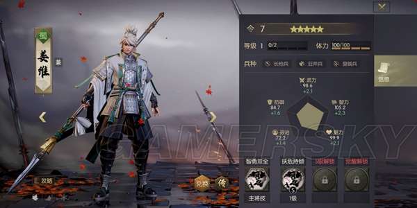 足智多谋:姜维+陈宫+钟会+王允+李儒+朵思大王,使我方全体武将智力提高20
