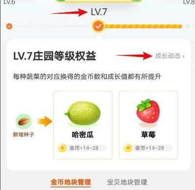 上方显示的就是庄园等级以及升级进度,点选庄园等级权益右侧的成长动态;