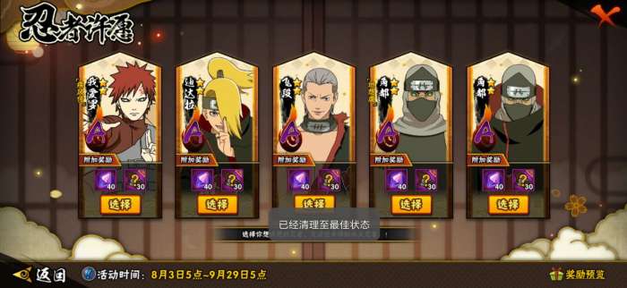 如果小伙伴们想要选择忍者打决斗场的话,可以按照上面的排列择优选择、