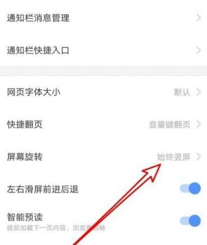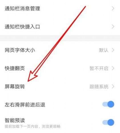 4、把你打开到搜狗浏览器设置页面,点击旋转屏幕的设置项。